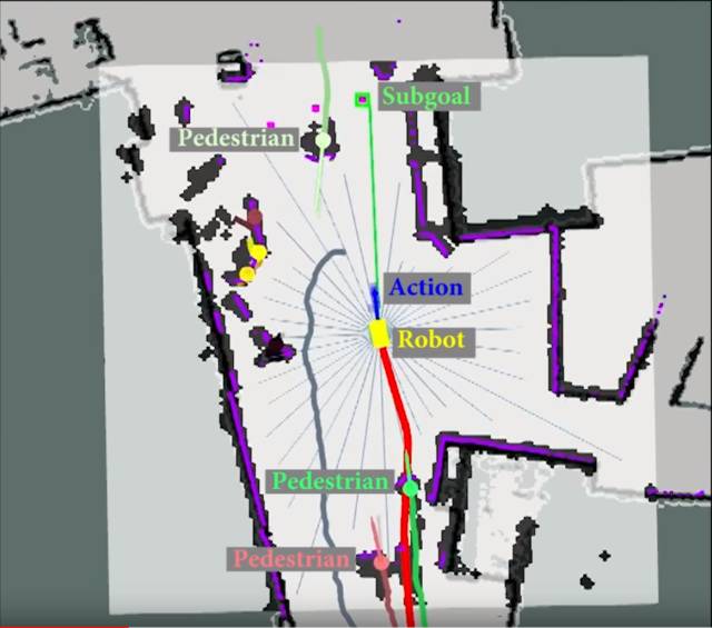 以前研究者们试图让机器人在人类拥挤的地方自主航行的尝试均遭到了不同程度的挫折。例如,基于轨迹的方法,机器人根据传感器数据预测一个人将走到哪里。这种方法存在一个很严重的问题:机器人必须在不断变化的环境中收集数据,并弄清楚它的下一步行动是什么。这常常会导致反复的停止/启动运动。