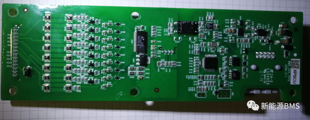 今天一起看一下小鹏G3的BMS采样板。我拿到的采样板如下图,粗略来看是AFE+隔离+单片机+CAN的结构。从外部输入信号来看,它只采集了2个温度信号,8个电芯电压信号。
