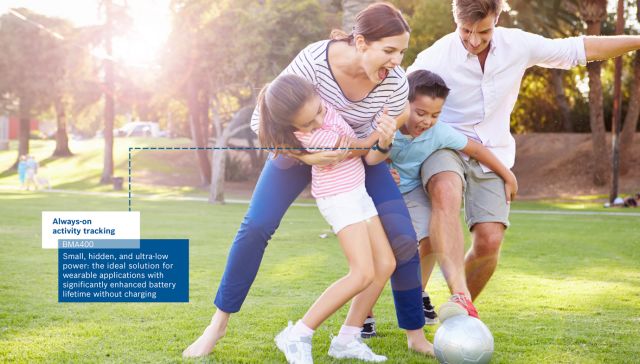 BMA400凭借其步进式计数器仅4μA的超低耗电量,和其智能电源管理功能(如内置活动识别),能前所未有延长可穿戴设备(如健身带、智能服装、腕表和活动追踪器)所配电池的使用寿命。