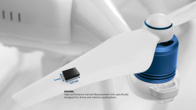 同时在消费电子展(CES)推出的有MEMS传感器 BMI088,这是一款高性能惯性测量单元(IMU),具有卓越的抗振性,专为无人机和机器人应用而设计。