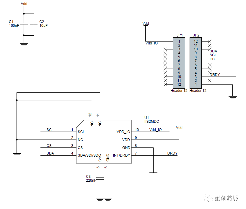 EVB-IIS2MDC提供完整的工业级磁力计IIS2MDC信号输出,并在VDD/VDDIO上提供所需的去耦电容,用户基于它可以快速设计自己的系统原型和设备,直接调试评估芯片的功能和性能参数