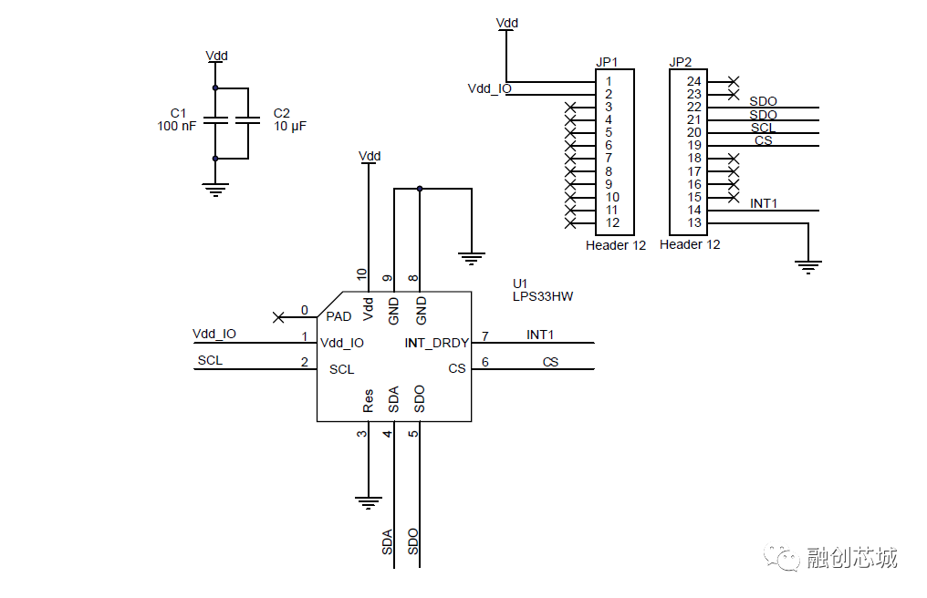 EVB-LPS33HW提供完整的防水气压计LPS33HW信号输出,并在VDD/VDDIO上提供所需的去耦电容,用户基于它可以快速设计自己的系统原型和设备,直接调试评估芯片的功能和性能参数