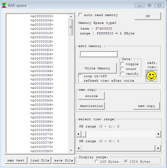 (2) 双击BAR 0,对BAR 0空间进行读写测试,出现如下对话框:
