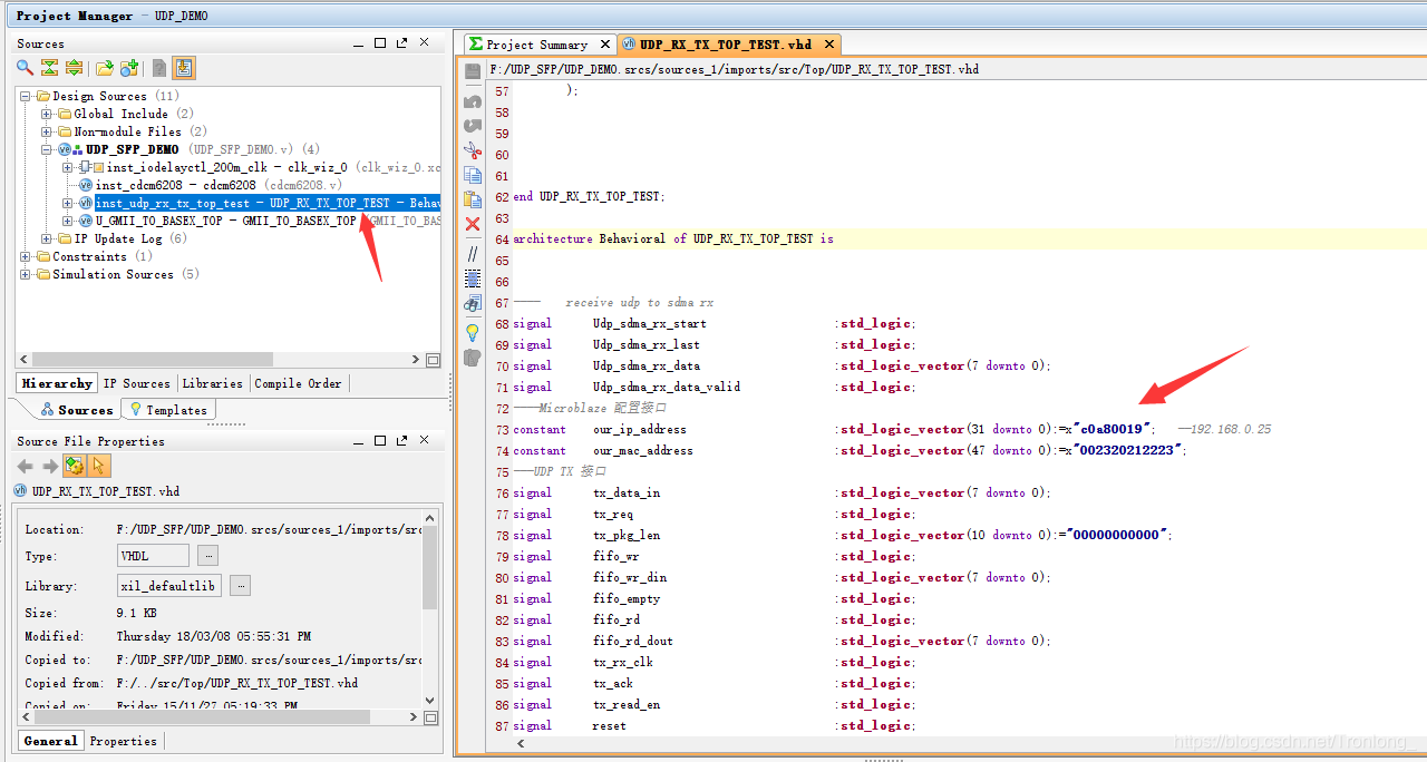 - 按程序加载步骤加载UDP_SFP_DEMO.bit文件,路径:"Demo\UDP_SFP\UDP_DEMO.runs\impl_1"。
