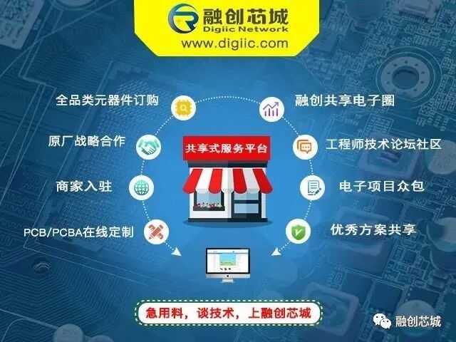 融创芯城(www.digiic.com) ,专业服务小批量的采购和配单要求, 提供一站式电子元器件,PCB,PCBA购买服务; 并提供项目众包、方案共享平台、商家免费入驻、工程师交流论坛、共享电子圈、行业最前沿、人才招聘!