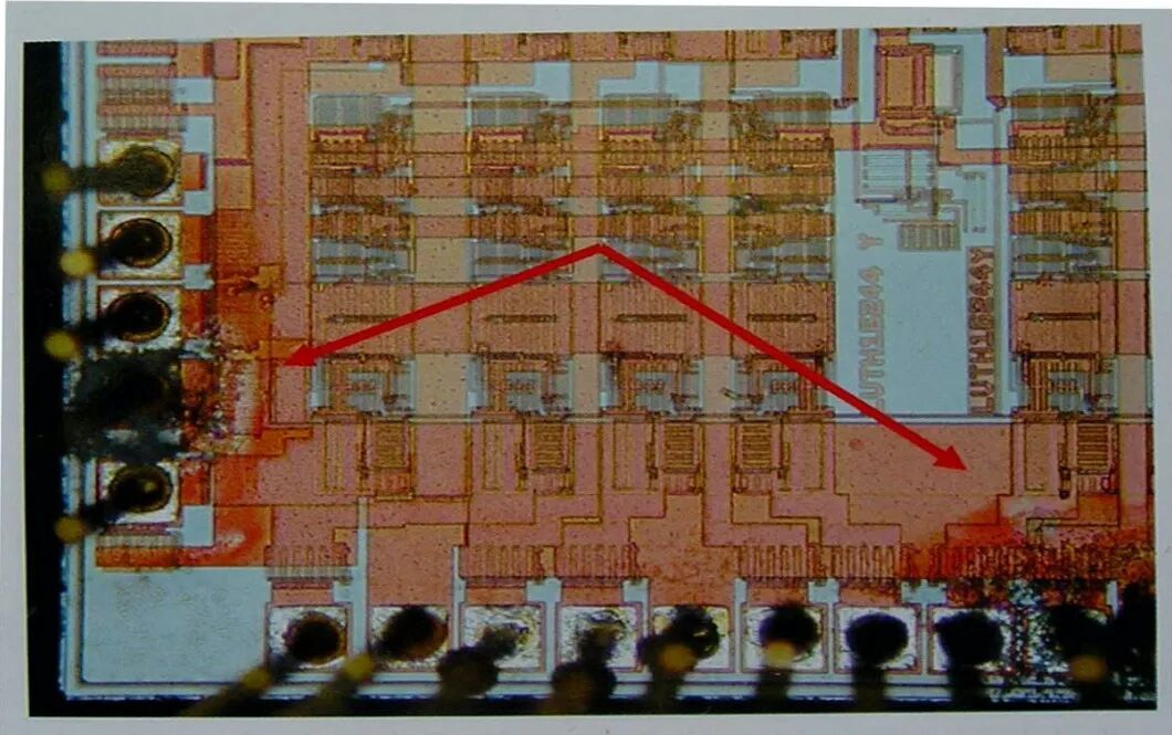 由于MOS管存在寄生晶体管效应(CMOS管下面会构成多个晶体管,它们自身可能构成一个电路),若电路偶然出现使该寄生晶体管开通的条件,则寄生电路会极大影响正常电路的动作,使原MOS电路承受大于正常状态很大的电流,可使电路迅速烧毁。闩锁状态下器件在电源与地之间形成短路,造成大电流、过电应力和器件损坏