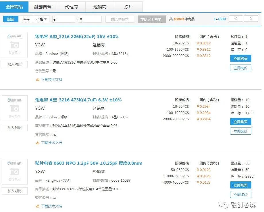 日前,为给用户带来全方位的购物体验,融创芯城开启了TDK, Murata, 国巨,风华高科,三星等品牌的剪带服务。