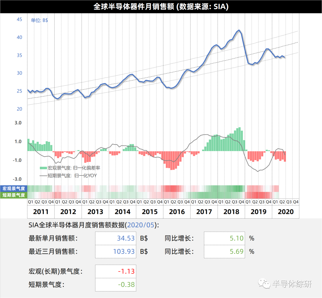 下图是我之前发布过的全球半导体器件销售额数据。大家可以参考一下,了解全球半导体产业的景气度,加强对上述三家企业财务数据的理解和判断
