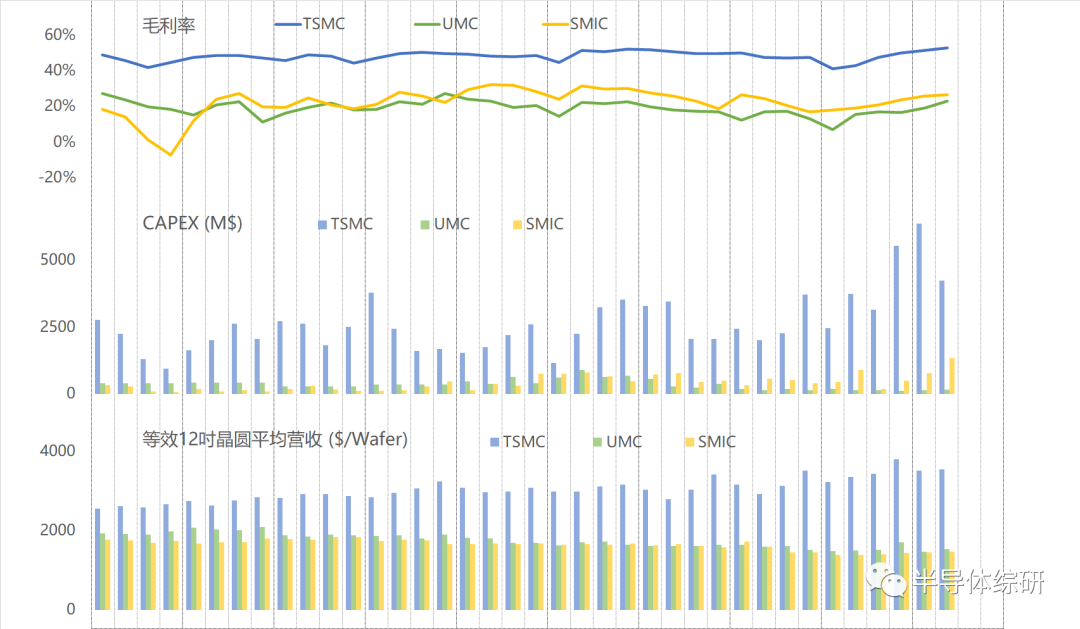 从下图上看,三家代工厂的营收都保持较高的增长率。SMIC相对而言偏低一些,但三家整体走势基本一致