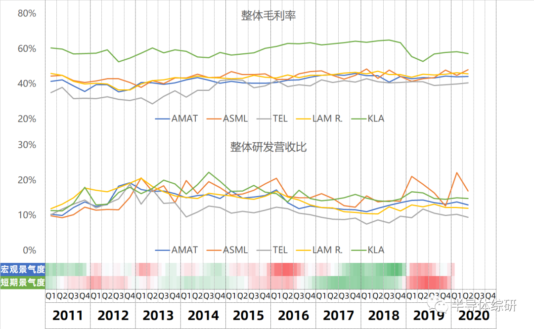 而在研发投入上,几家中AMAT最近两年的研发营收比例最高,TEL相对偏低,其它3家大体一致