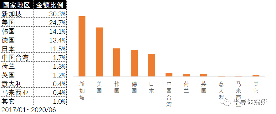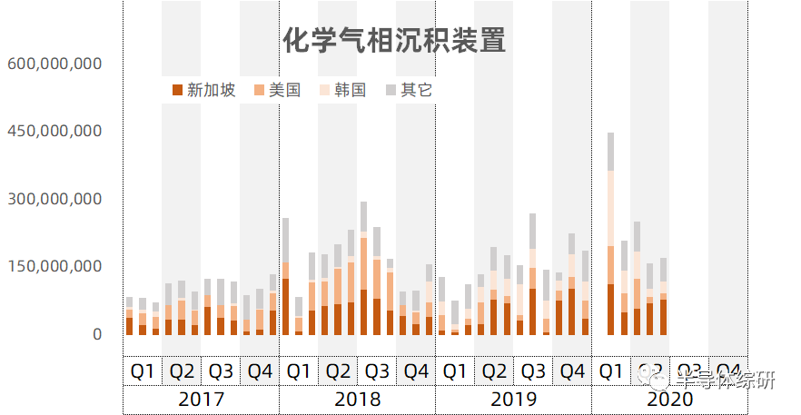 而从进口国家地区分布上看,CVD设备的最主要来源居然是新加坡。这可能是美日供应商在新加坡的分公司生产或组装后直接出口到大陆的。后续有机会我会再调查一下细节,也欢迎读者提供线索