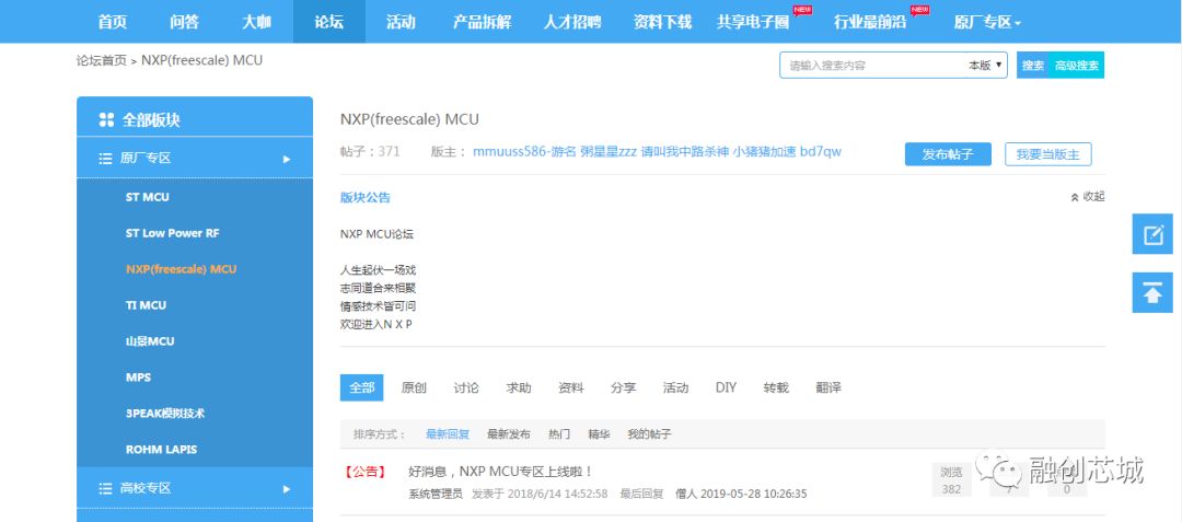 融创电子论坛NXP专区,和更多专业人士进行交流探讨,还有NXP大咖会不定期发表技术文章,技术分享等专业的行业经验。