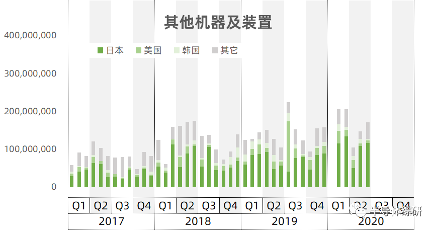 半导体设备的分类很多,远远不止海关归类的前面9种,所以还有很多被分类到了其它之中。这块的进口金额也不小