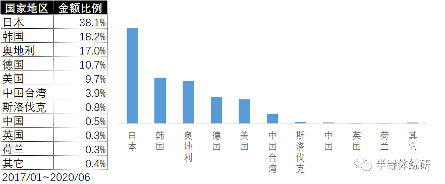 来源地上,主要是日本和韩国。日本有世界湿法设备排名第一的供应商DNS,而韩国应该主要是SEMES