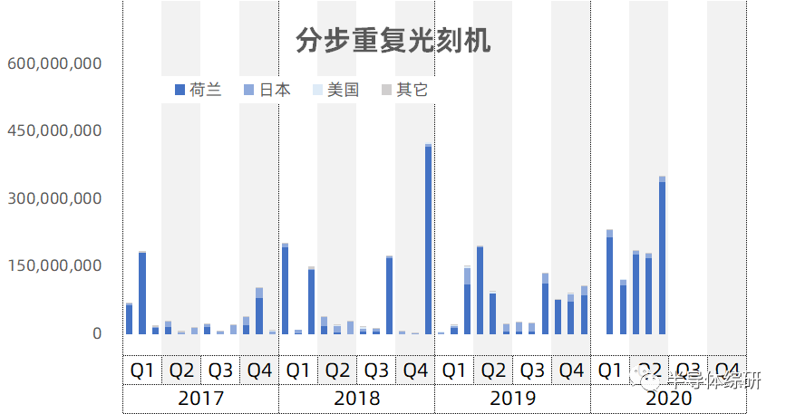 其它的光刻设备的进口量在近几年内整体变化不大。进口来源地也主要来自荷兰和日本,但日本的份额相对略有增加
