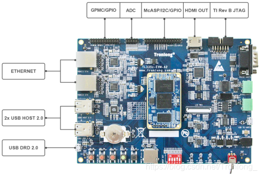 评估板接口资源丰富,引出双路千兆网口、HDMI、GPMC、CAN等接口,方便用户快速进行产品方案评估与技术预研。