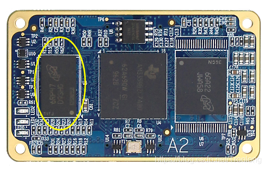 FLASH采用512M/1GByte NAND FLASH或4GByte eMMC,硬件位置如下图: