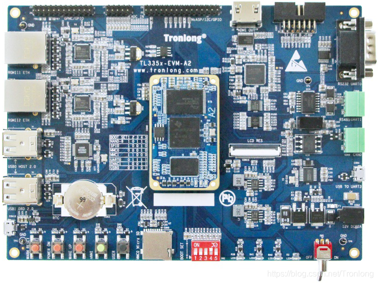 创龙TL335x-EVM是一款基于TI Sitara系列AM3352/AM3354/AM3358/AM3359 ARM Cortex-A8高性能低功耗处理器设计的评估板,由核心板和底板组成。核心板经过专业的PCB Layout和高低温测试验证,稳定可靠,可满足各种工业应用环境。