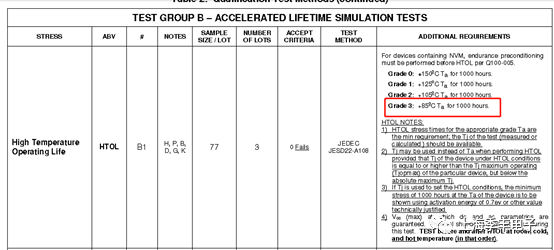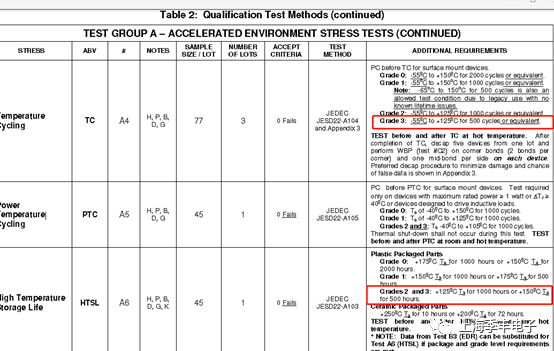 AECQ100该做的可靠性验证项目还是要做的只是其中某些项目,比如TC HTSL,对应的选择grade3么?