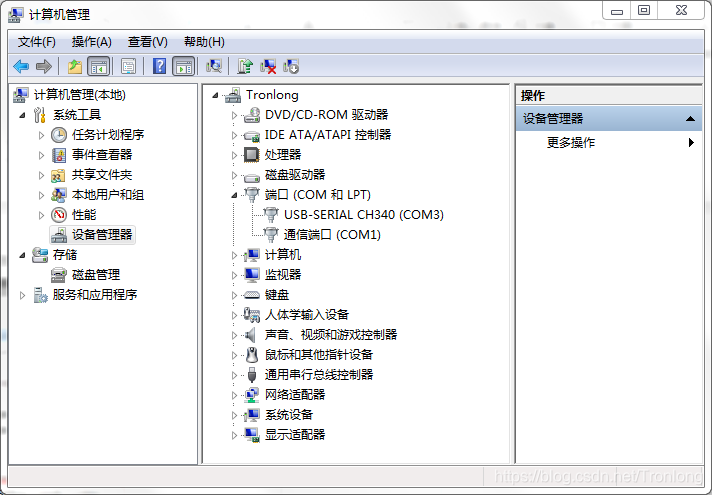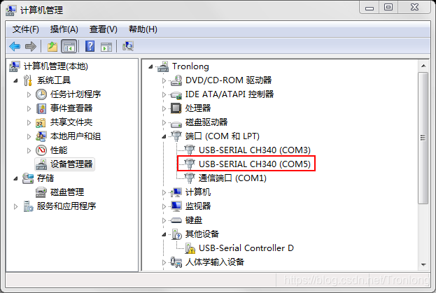 打开设备管理器,确认RS485串口的COM端口号,如下图所示。
