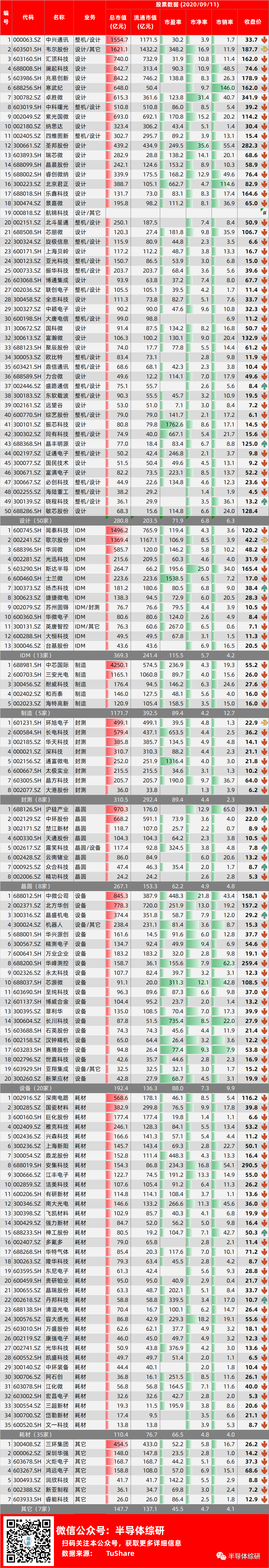 首页 论坛 FAE/研发经验文章分享 市场分析 行业周报|A股半导体相关公司股价速报(2020-09-11)