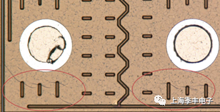 WLCSP产品,板级可靠性PCT测试后short,直接在板上做的切片,结果如下。smt跟其他样品一起做的啊,uhast,tc,htsl都pass,只有pct fail。在这个之前做了另一个产品的pct,pass。这个产品做了两次试验,共三个lot,都死在pct上,其他都pass