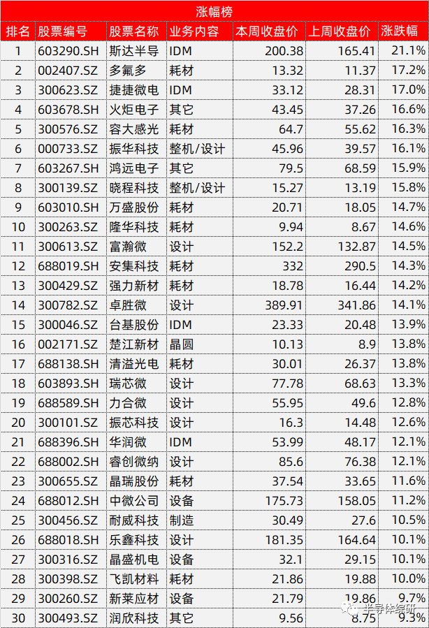本周A股的半导体股票经历了前一周的暴跌之后,有了明显的反弹: