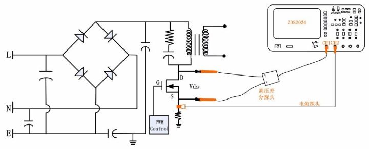 图8 开关管电流波形对比测试的仪器连接