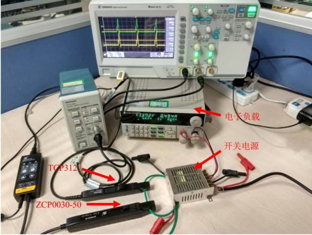 电流波形对比测试主要用到的测试仪器主要有:ZDS2022示波器、电子负载、开关电源、电流探头ZCP0030-50和TCP312。