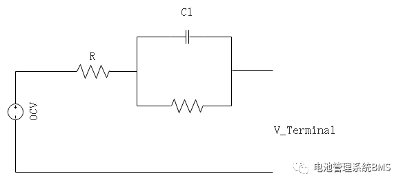 2. 充放电倍率与端电压对应关系特性。电池动态情况下,我们测量到的电池电压,实际上电池的端电压。下图为一个简单的电池一阶RC模型,其中左侧的电压源代表OCV,R表征内阻,R1C1表征极化,右侧输出为端电压。所以一旦电池进行充放电,则端电压与OCV相差甚远。