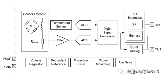 基于TMR技术开发的电流传感器可解决这些问题,其中使用了无芯传感器。TMR电流传感器的磁检测部分(由TMR元件、线圈和电阻组成)和专用集成电路均集成在一个封装中,能够采用非接触方式高精度测量高达1200 A的大电流,且误差小于1%(满量程)。此外,它的体积小,功耗低,可以实现前所未有的高精度电池监测。