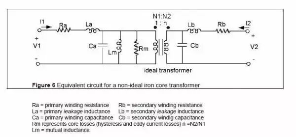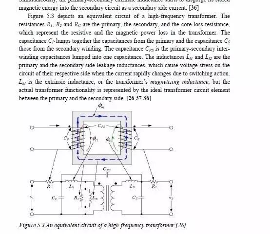 大家都知道这个尖峰是开关MOS开通的时候出现的,根据反激回路,Ids电流环为Vbus经变压器原边、然后经过MOS再到Vbus形成回路。本来原边线圈电感特性,其电流不能突变,本应呈线性上升,但由于原边线圈匝间存在的分布电容(如下图中的C),在开启瞬间,使Vbus经分存电容C到MOS有一高频通路,所以形成一时间很短尖峰。