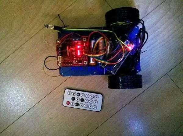 51单片机红外遥控小车用单片机最小板是是一块6元钱的最小板(就是哪种直接把IO引出来,加个晶振),电机控制板,与P连接。先在电脑上测试程序,测试好后,再把程序下载到单片机中,这里要说明一下的是红外的信号是间断发出的,所以是按一下就执行某个动作,要停止还得按停止按键。