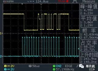 本文中的测试波形都是在arduino平台上测试得到的,arduino有个好处就是有个很方便的串口查看器,在电脑上可以轻松读取串口上送多来的信息。但好像目前在工业上的应用很有限,尤其是国内,主要是一些年轻的电子爱好者或一些搞机械或者搞美术的创客们用的多一点。它就是可以设定IO口方向的。但文本给出的程序代码主要是基于51单片机的,而且是89C52这种不带IO方向设定功能的。原因就是我也很想搞清楚没有IO口方向控制时,单片机怎么区分输出和输入的操作。我会一边测试一边写这篇笔记。首先来看看正常工作的波形是什么样的: